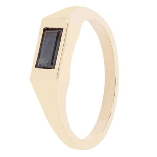 Baguette Signet Ring – 14k Yellow Gold with Sapphire