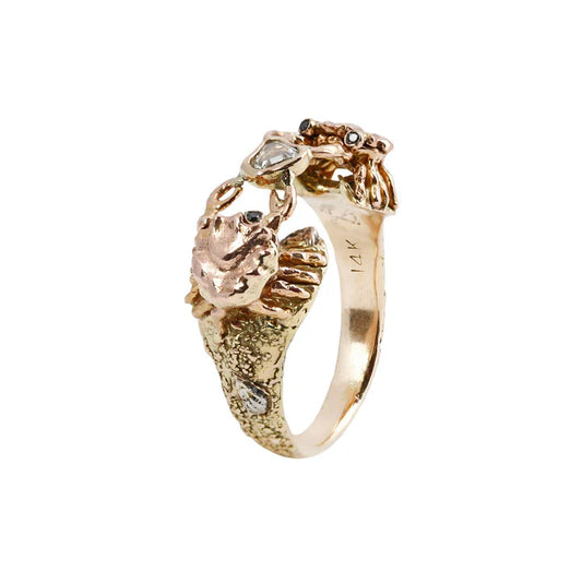 Petite Crab Ring – 14k Gold with Rose-Cut and Black Diamonds
