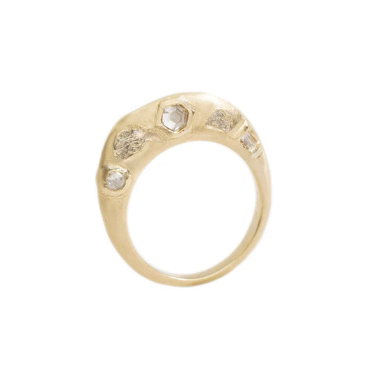 Flagstone Ring – 14k Yellow Gold with White Gold and Rose-Cut Diamonds