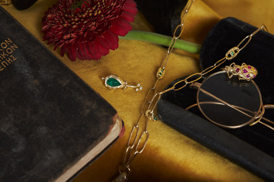 Alexis Pavlantos grew up in the mineral heartlands of Tijeras, New Mexico. The daughter of a gemologist and goldsmith, at a young age she was immersed in jewelry and rock culture. With this acquired and hereditary passion for creating, she continued her studies at University of New Mexico, where she obtained her BFA in sculpture. After graduation she moved to the Bay Area to pursue a career in the arts. With limited space to create and a background of metalsmithing attained by childhood knowledge of her mothers practice, Alexis decided to combine the two worlds making wearable-art.
