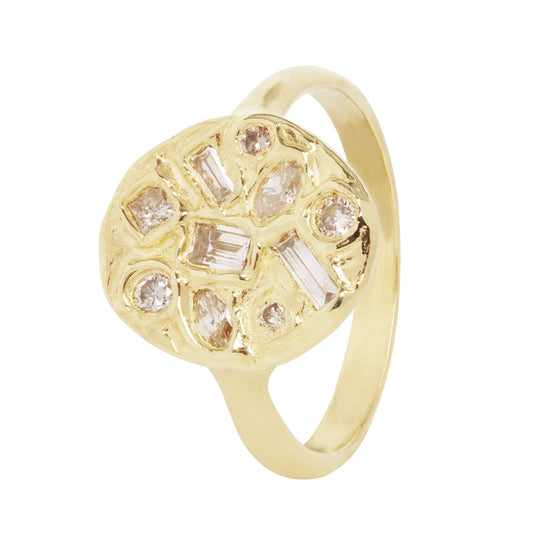 Symplegma Diamond Signet Ring – 18k Yellow Gold Cluster Ring