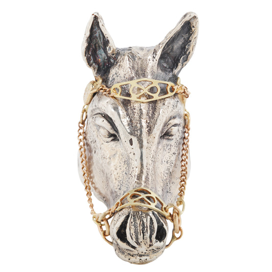 Horse Ring with Kinetic Bridal – Sterling Silver and 14k Gold