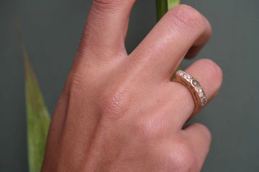 Petite Dualism Ring • 14k Yellow & Rose Gold • Mixed Natural Diamonds