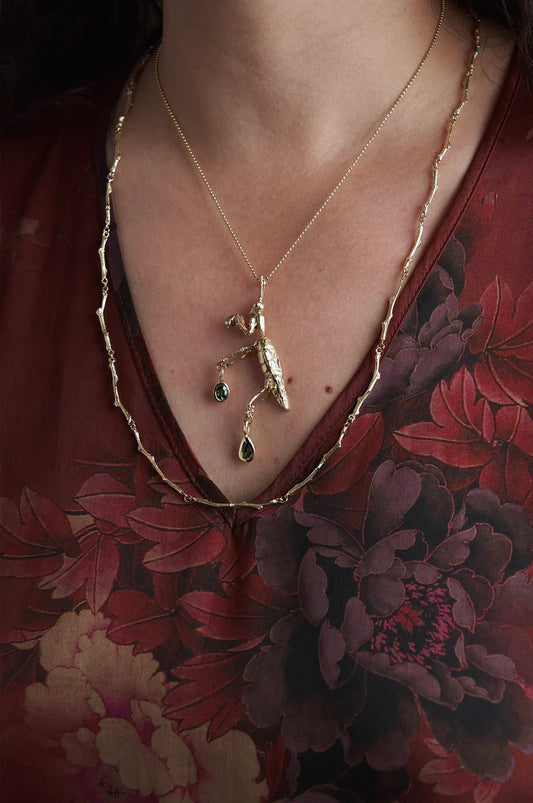 Praying Mantis Necklace - 14k Gold or Sterling Silver - Sapphire or Jade Accents