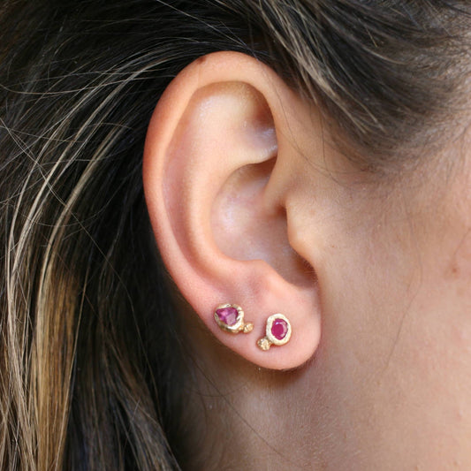 Alexis Pavlantos grew up in the mineral heartlands of Tijeras, New Mexico. The daughter of a gemologist and goldsmith, at a young age she was immersed in jewelry and rock culture. With this acquired and hereditary passion for creating, she continued her studies at University of New Mexico, where she obtained her BFA in sculpture. After graduation she moved to the Bay Area to pursue a career in the arts. With limited space to create and a background of metalsmithing attained by childhood knowledge of her mothers practice, Alexis decided to combine the two worlds making wearable-art.
