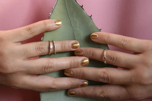 Alexis Pavlantos grew up in the mineral heartlands of Tijeras, New Mexico. The daughter of a gemologist and goldsmith, at a young age she was immersed in jewelry and rock culture. With this acquired and hereditary passion for creating, she continued her studies at University of New Mexico, where she obtained her BFA in sculpture. After graduation she moved to the Bay Area to pursue a career in the arts. With limited space to create and a background of metalsmithing attained by childhood knowledge of her mothers practice, Alexis decided to combine the two worlds making wearable-art.