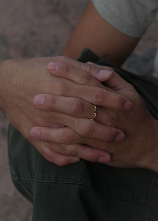 Medium Beetle Stacking Ring – 14k Yellow Gold Hand-Carved Design