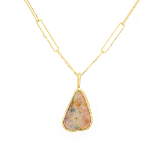 Rainbow Opal Engraved Bezel Pendant