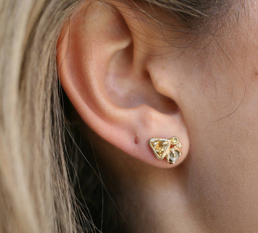 Compaction Ring • 14k Yellow, Rose & White Gold • Champagne Diamond
