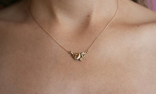 Crescent Portrait Pendant – 18k Solid Gold with Diamond