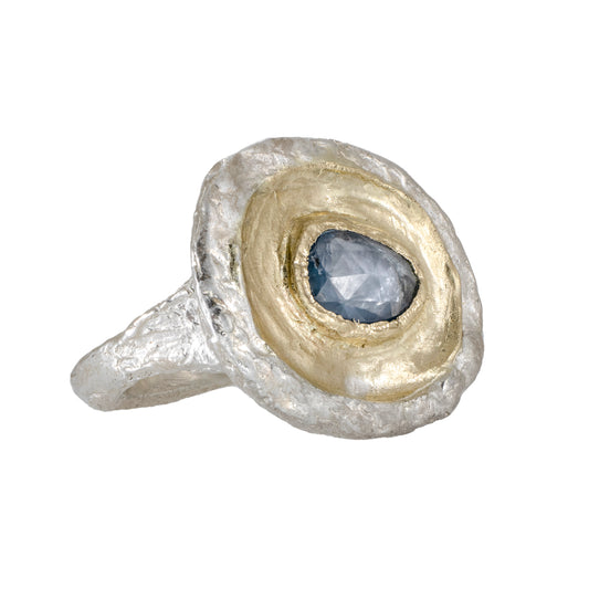 Geo Circle Ring – 14k Yellow Gold, Sterling Silver, Jasper & Diamond