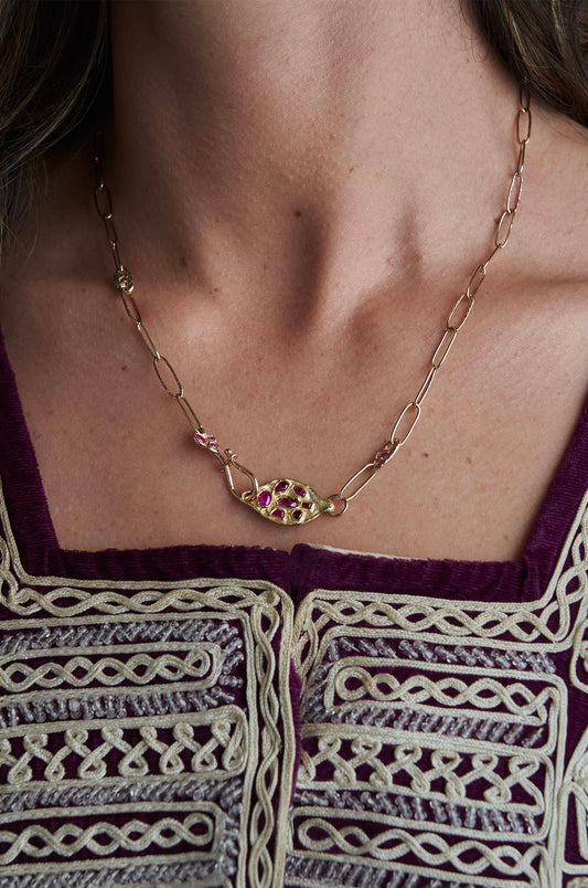 Gold Beetle Necklace with Cruzeiro Pink Tourmaline – 14K Yellow Gold