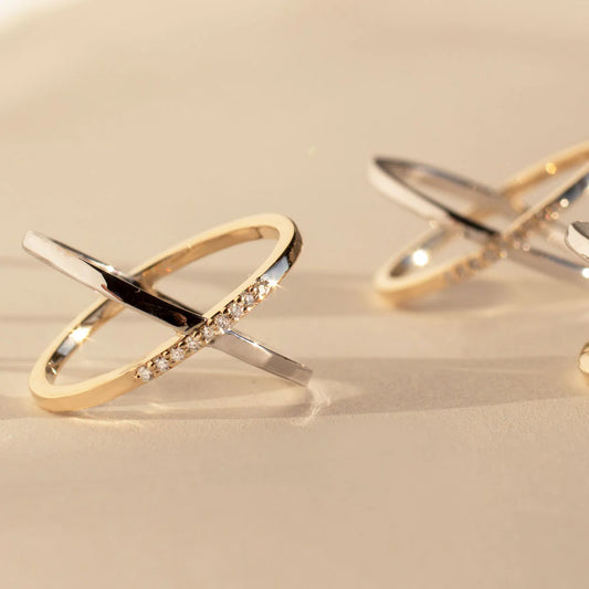 X Diamond Ring - 14k Yellow & White Gold with Diamonds