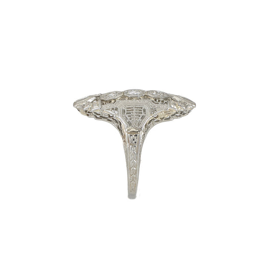Navette 18k White Gold Filigree Diamond Ring - Vintage 1950s Art Deco