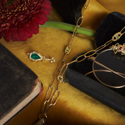 Grass Green Skull Baby – Chalcedony & Diamond 14k Gold Charm