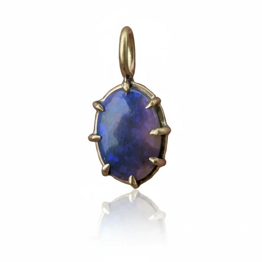 Violet Lightning Ridge Opal Basket Pendant - 18k Gold