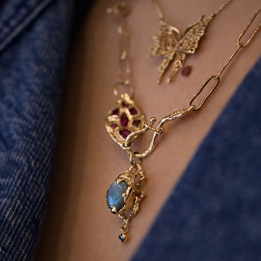 Discover handcrafted charms designed as symbols of memory and personal storytelling. Featuring sculptural forms, gemstone talismans, and collectible designs in sterling silver, gold, and natural materials for meaningful everyday wear.