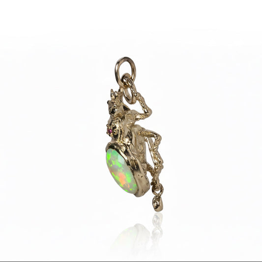 Semi-Black Opal Desert Beetle Charm - 14k Gold