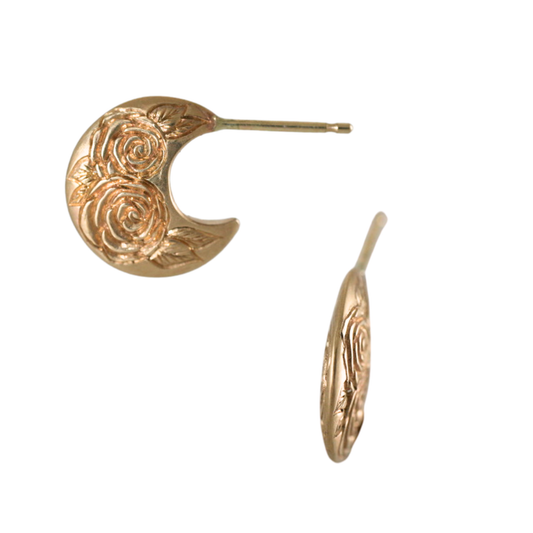 Beloved Rose Disc Hoops - Hand Engraved 14k Solid Gold