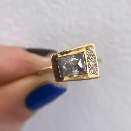 Small Chameleon Ring – 14k Gold with Salt and Pepper Diamond