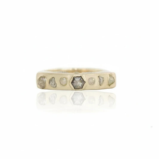 Sparkle Fractured 14k Gold Ring Band with Baguette Diamond