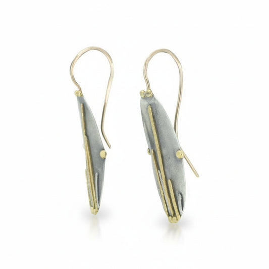 Double Spine Drop Studs • 18k Yellow Gold Statement Earrings