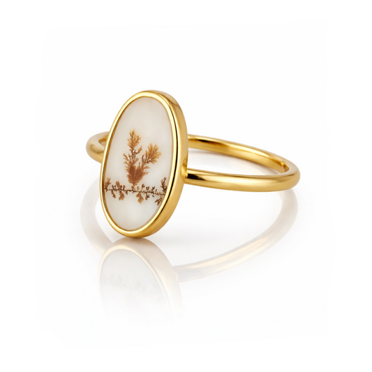 Dendritic Agate Oval Bezel Ring - 18k Gold