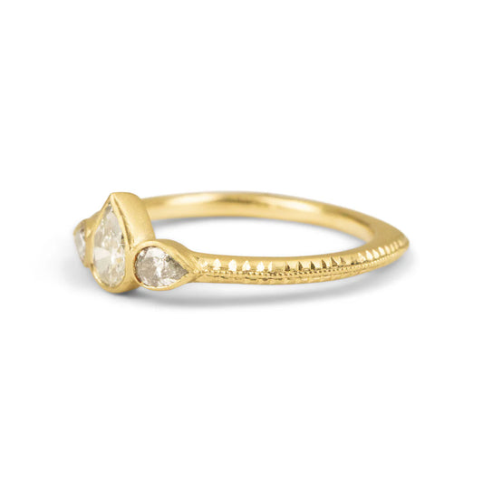 Diamond Pear Trio Engraved Bezel Ring - 18k Gold