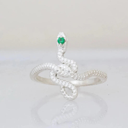 Snake Guardian Ring - Sterling Silver Zambian Emerald Talisman Ring