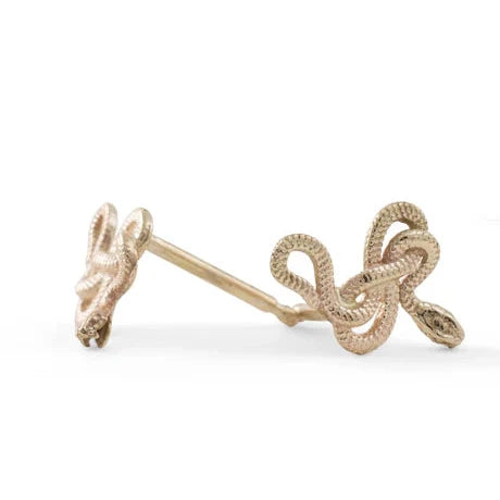 Snake Guardian Studs - 14k Solid Gold Handcrafted Earrings