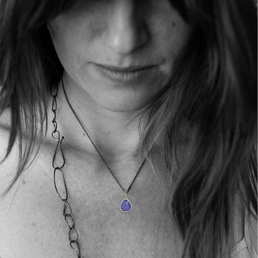 Tanzanite Shimmer Pendant – Sterling Silver & 18k Gold