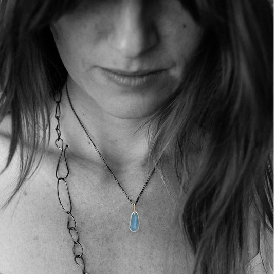Aquamarine Shimmer Pendant – Sterling Silver & 18k Gold