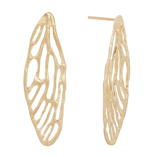 Medium Cicada Wing Earrings – 14k Yellow Gold