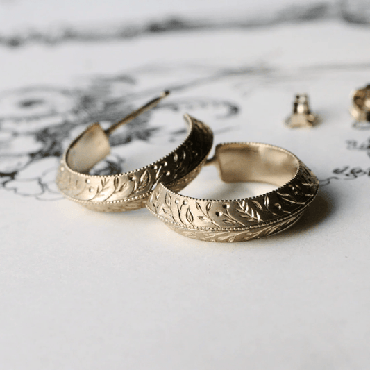 Garden Hoops – Hand Engraved 14k Gold Earrings