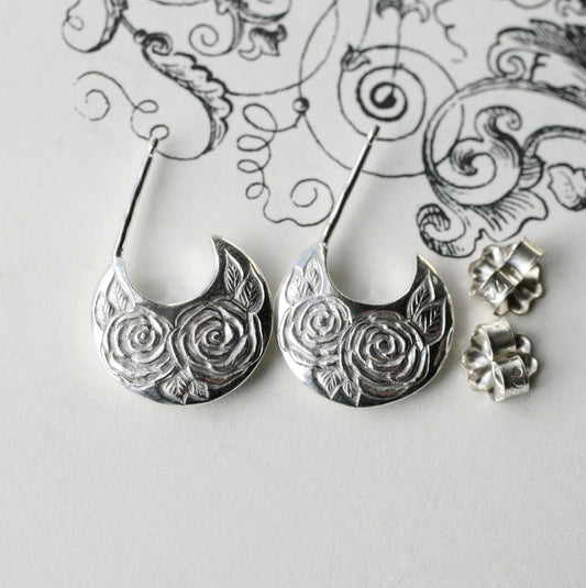 Beloved Rose Disc Hoops - 14k Gold or Silver