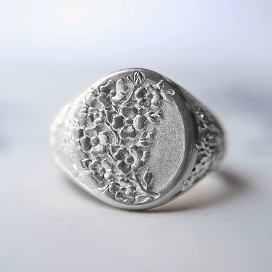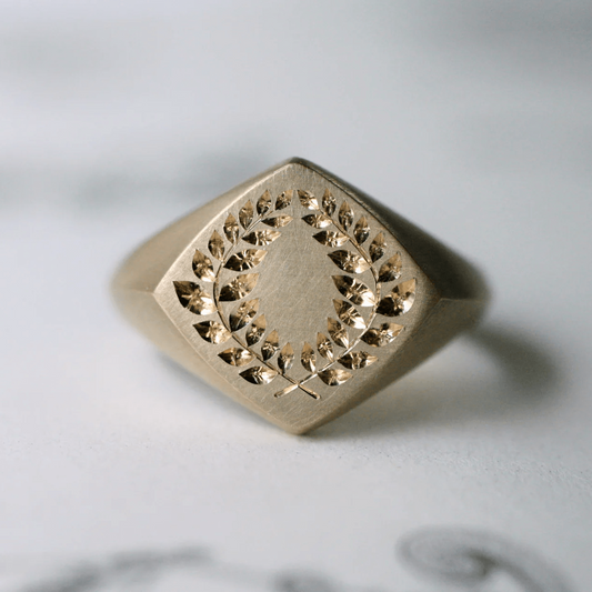 East-West Acanthus Signet Ring – Sterling Silver & Gold or 14k Gold & Rhodium