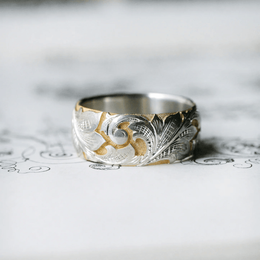 Wide Acanthus Ring – 14k Yellow Gold or Sterling Silver & 14k Gold