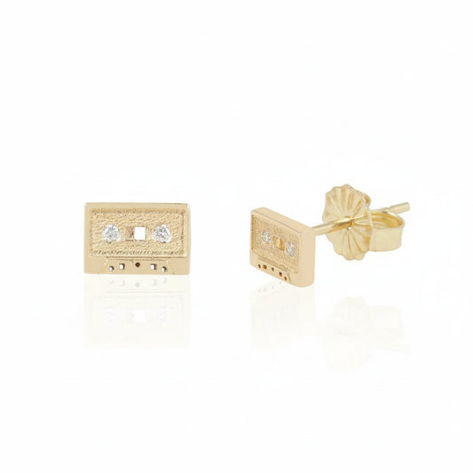 Mini Mixtape Studs - 14K Gold Diamond Cassette Earrings