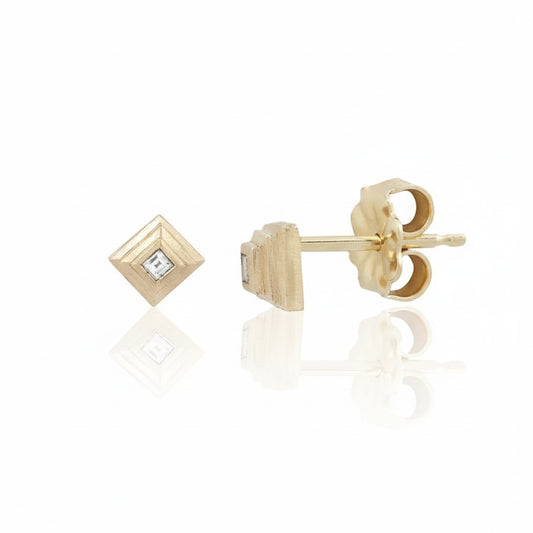 Tiny Ziggurat Diamond Studs – 14k Yellow Gold