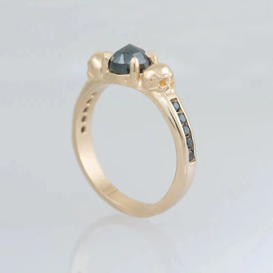 Nocturna’s Oath Ring – 14k Gold & Black Diamonds & Skull Detail