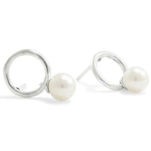 Circle Studs with Dangling Pearl