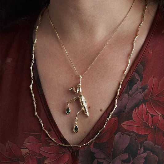 Praying Mantis Necklace - 14k Gold or Sterling Silver - Sapphire or Jade Accents
