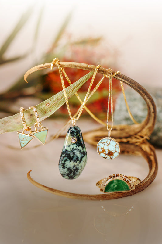 Large Luna Slide Necklace – 14k Gold & No. 8 Turquoise Pendant