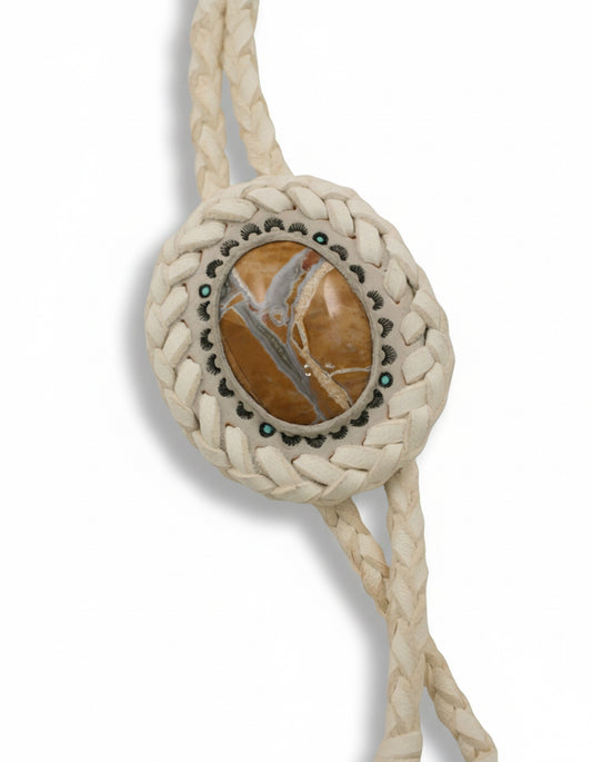 Tiger’s Eye Bolo Tie – Hand Tooled Leather