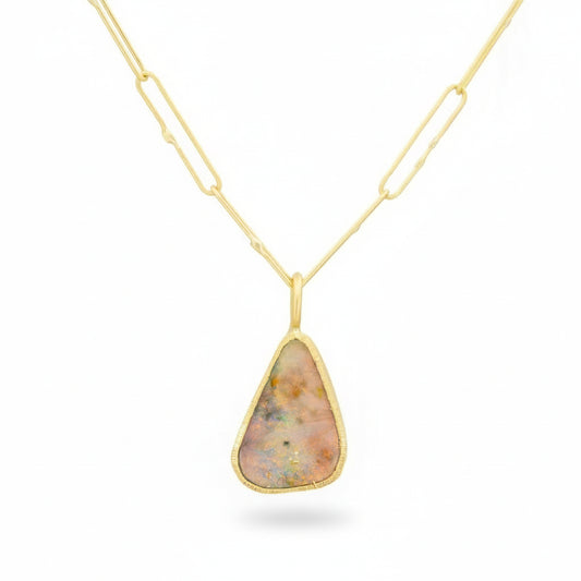 Rainbow Opal Engraved Bezel Pendant - 18k Yellow Gold