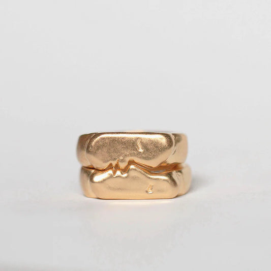 Kiss Signets Gold • Pair of 14k Gold Vermeil Rings • Sculptural