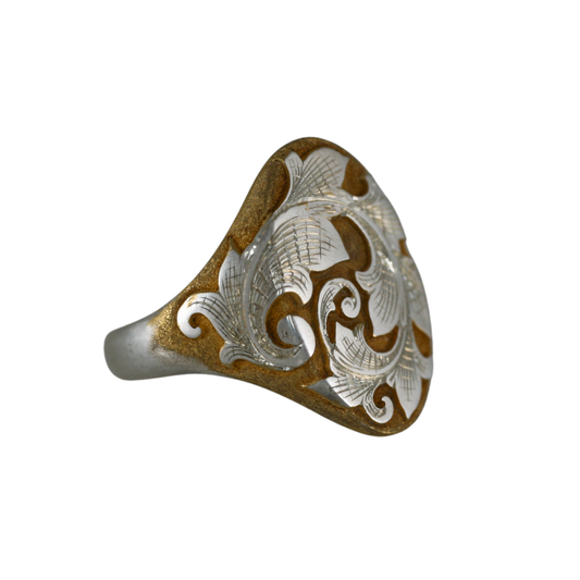 North-South Two-Tone Acanthus Signet Ring – Sterling Silver