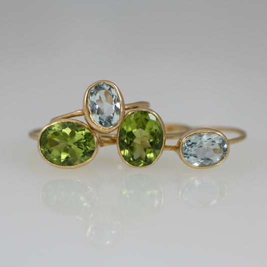 18k Yellow Gold Peridot Ring - Horizontal Set