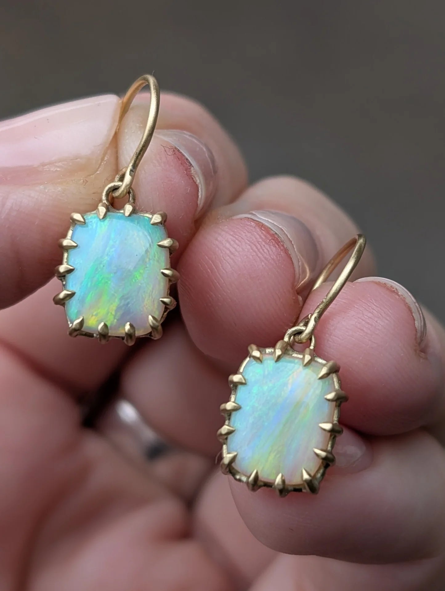 With a stunning flash and a classic shape, these opals are sure to be an everyday staple in your jewelry collection. Hand set in a classic multi-prong basket setting, the lightning ridge opals can really shine in their true colors.