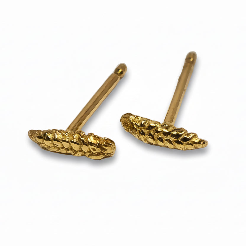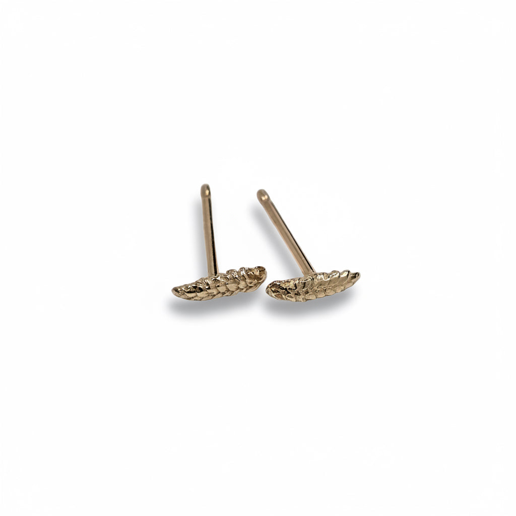 Tiny, hand-carved wheat shaft studs designed with a wink - dainty, minimalist, and endlessly wearable.